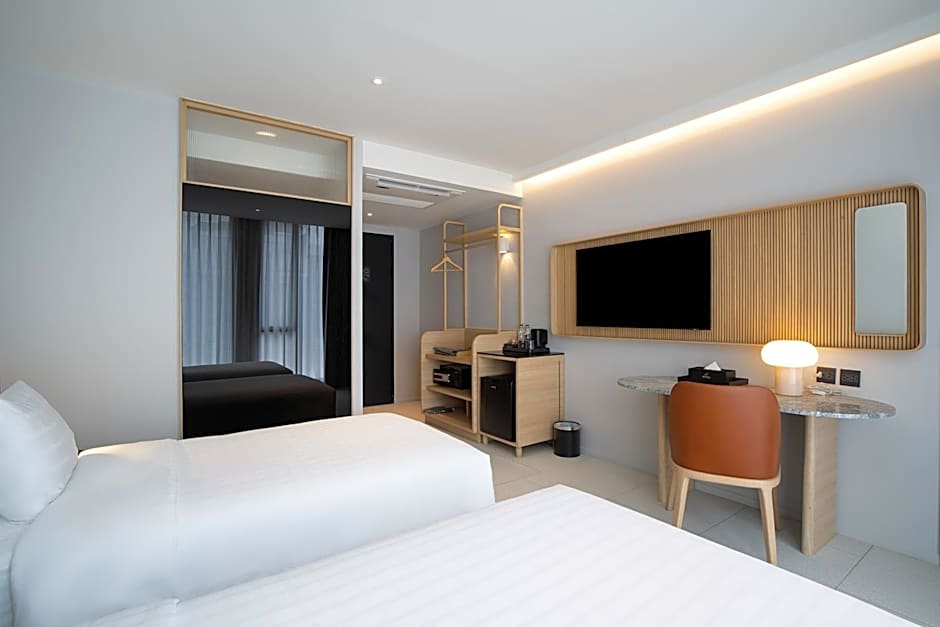 Providing free toiletries and bathrobes, this twin room includes a private bathroom with a shower, a bidet and a hairdryer. The air-conditioned twin room provides a flat-screen TV with streaming services, a seating area, a safe deposit box, an electric kettle as well as city views. The unit offers 2 beds.